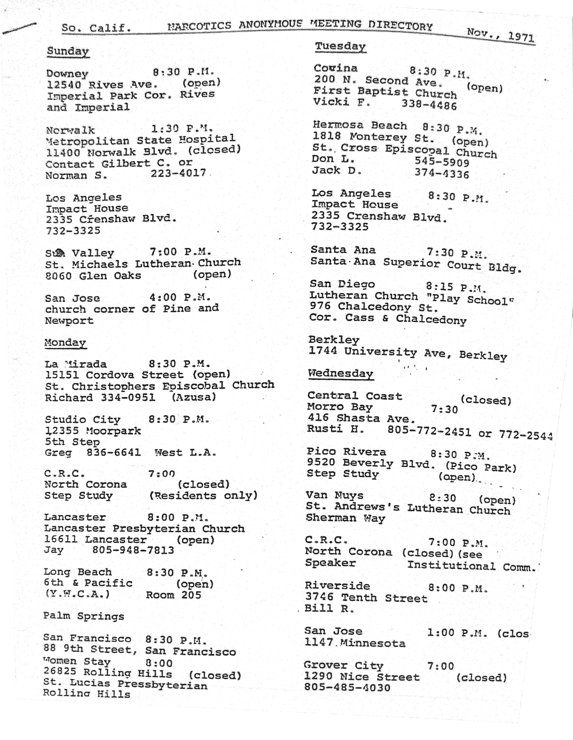 First Narcotics Anonymous Meeting in Sun Valley, CA